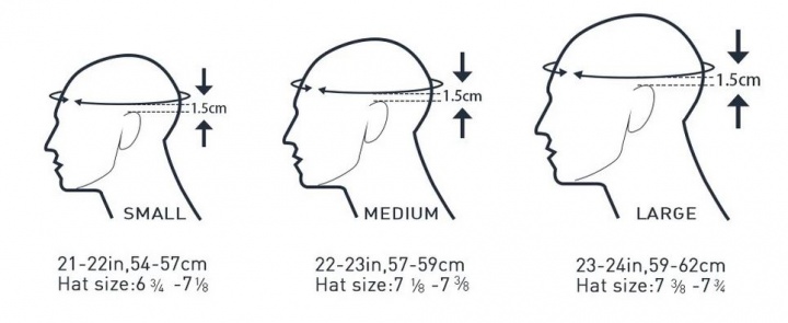 Большинство производителей шлемов имеет размерную сетку, выраженную в буквенных обозначениях, однако размеры, соответствующие длине окружности головы, у разных фирм и моделей могут существенно отличаться. Поэтому во время подбора шлема вы можете воспользоваться ссылкой на таблицы размеров для различных моделей, а при его примерке - обратить внимание на наклейку, размещенную на внутренней стороне шлема или в сопровождающей его документации.