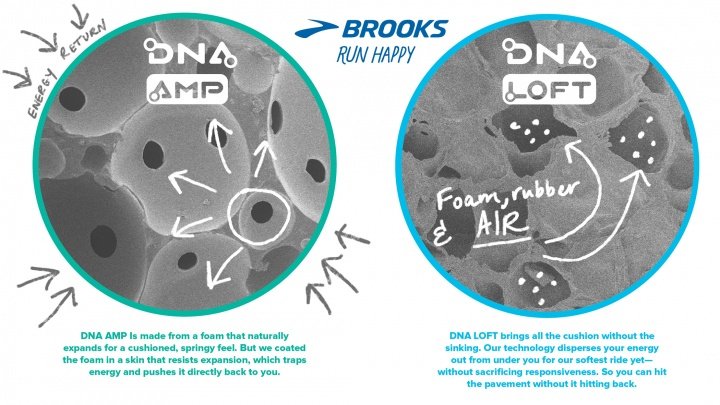 Те, кто успел протестировать модели кроссовок Brooks с технологией DNA, могут подтвердить, что амортизация там невероятная. Специальный слой в подошве обеспечивает легкий пружинистый бег.