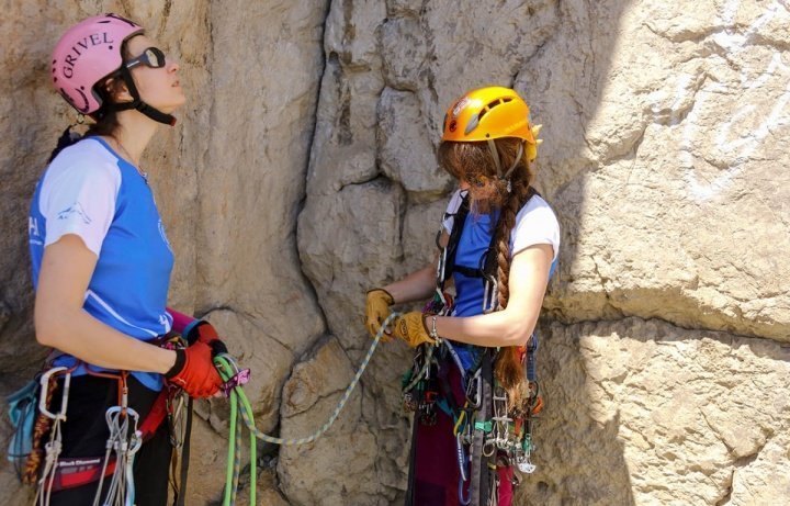 В сложных условиях палящего солнца и обезвоживания, со сменой лидера, девчонки прошли маршрут почти за 12 часов. День отдыха восстановил силы и вновь маршрут - Орёл, 5б. Погода сжалилась и подарила пасмурное небо и даже грозу с градом под вершиной, итого почти 10 часов заняло восхождение. Оба маршрута - классика технического альпинизма, много “подлазов”, хорошая грамотная работа с искусственными точками, хватает и лазания “тредом” (лазание со своими точками страховки).