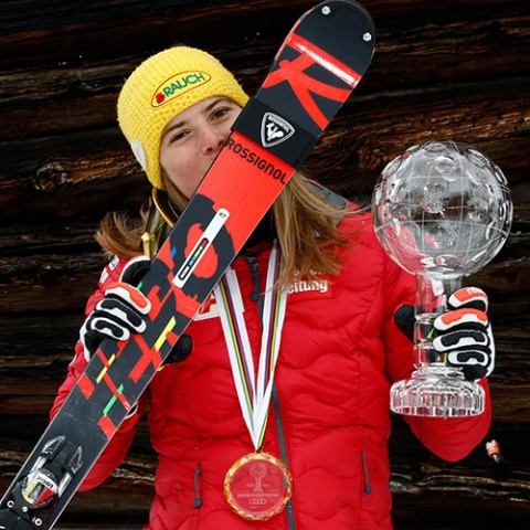 У молодой австрийской спортсменки зима получилась просто героической. Хрустальный шар в слаломе, победы на Чемпионате мира.
