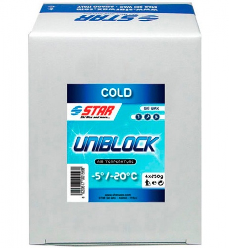 Star UNIBLOCK MINUS -5 -20С 250 ГР Универсальный парафин для холодной погоды. Оптимален для диапазона температуры от -20 до -5 градусов. Легко наносится. Бренд: Star Сезон: 2018/2019