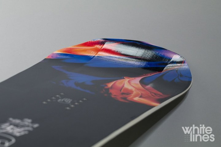 Фирменная технология 3BT в ее последней редакции задает замечательную геометрию носовой и хвостовой частям, так что доска прекрасно всплывает в снегу.