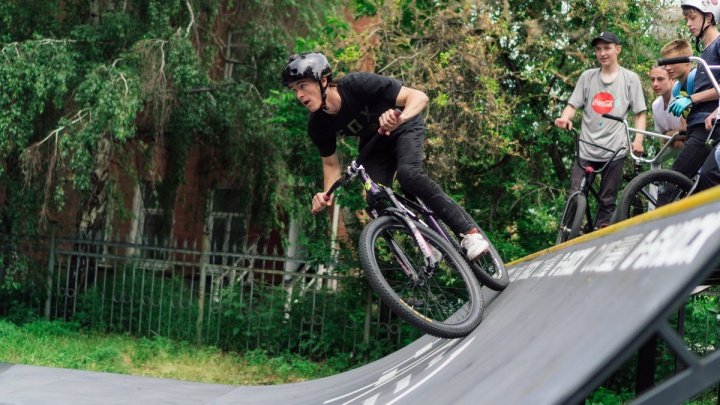 Рампа для моего МТВ велосипеда поначалу хоть и казалась маловата, но, покатавшись в ней несколько минут, я начал ловить какой-то свой флоу и получать дикое удовольствие. На легком фристайле мне удалось вспомнить свои старые парковые трюки и побороться за бест трик, выполнив барспин с перилы в рампу.