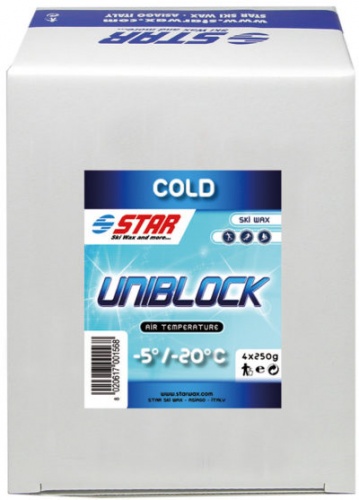 Star UNIBLOCK MINUS 250 G Универсальный парафин для холодной погоды. Оптимален для диапазона температуры от -20 до -5 градусов. Легко наносится. Бренд: Star Сезон: 2020/2021