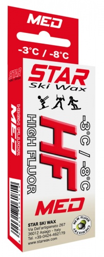 Star HF MED - HIGH FLUOR 60 G. Парафины серии "HF" (High Fluor), с высоким содержанием фторокерамики, гарантируют наилучшее скольжение при влажности воздуха 60 - 90% в условиях нового снега.… Бренд: Star Сезон: 2020/2021