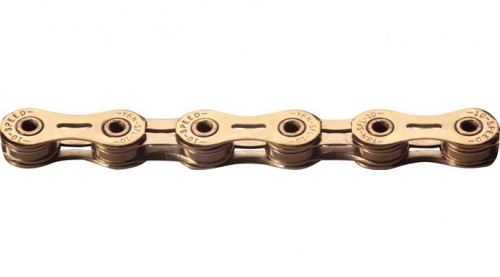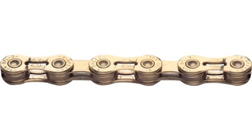 Цепь KMC BD11SLTB8 X11SL TI-N GOLD/BLACK 118L Облегченная надежная цепь, совместимая с системами на 11 скоростей.