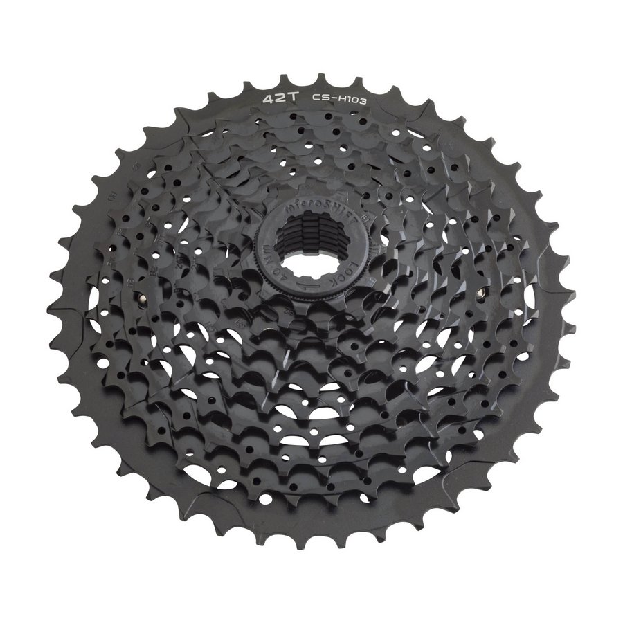 Кассета MicroSHIFT XLE H103A 11-42 10СКР Стальная кассета с большой алюминиевой звездой. Под стандартную 10-скоростную цепь.
