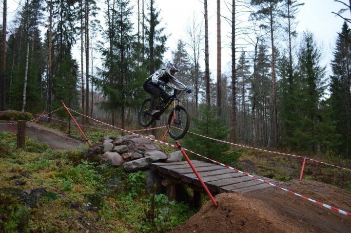 На следующий день была запланирована обычная гонка mDH по двум трассам с суммирование времен. Первая трасса – трек с плоскими поворотами, а вторая – настоящая парковая трасса с хорошими упорами, рукотворными каменными садами, даблами и дропами. Видно, что в ее создание вложено много усилий.