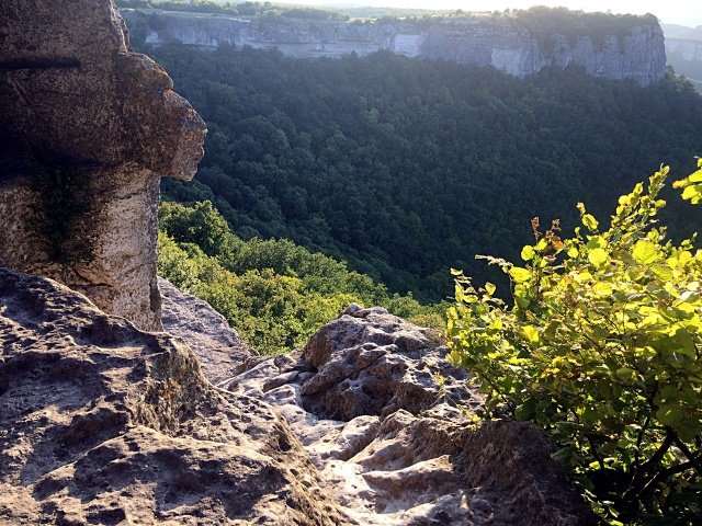 Есть предположение, что когда-то давно массив Чардаклы-Баир (часть внутренней Крымской гряды) и плато Мангуп были единым целым, а разделяющая их долина стала результатом тектонических процессов и эрозии. Если это так, я хочу поблагодарить время за создание этой красоты, простирающейся до горизонта подобно морю, на прибрежных скалах которого возвышается древний город, к которому мы должны были причалить.