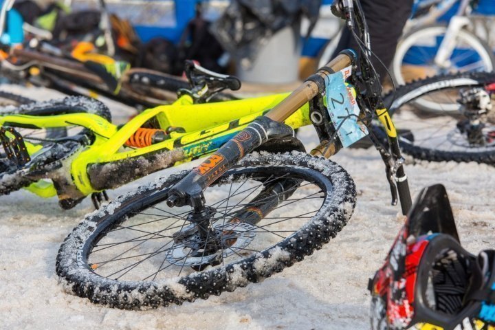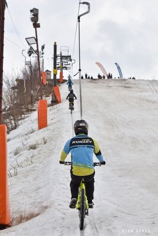 Всегда приятно готовить велосипед к первым соревнованиям после перерыва, а особенно после зимы. Вообще, катание на горнолыжке ранней весной – это всегда некое «мучение» по выбору резины. С одной стороны, кажется, что снег размякнет под натиском плюсовой температуры, поэтому надо ставить грязевую резину. С другой же, опыт подсказывает, что под снегом точно будет лед, поэтому лучше «обуться» в шиповки. Я решил довериться опыту и поставил шипованную резину на 26-х колесах, чем заметно занизил велосипед.