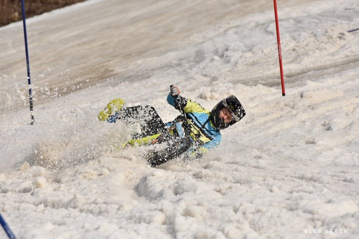 Для гонки были подготовлены две параллельные трассы, состоящие из 10 поворотов на «бодром» уклоне. Благодаря подъемнику за 10 минут можно было сделать несколько спусков, поэтому я старался не упускать возможности лишний раз потренироваться перед началом сезона, т.к. снег и лед очень похожи по уровню сцепления с глиной и жидкой грязью, которые часто встречаются на гонках.