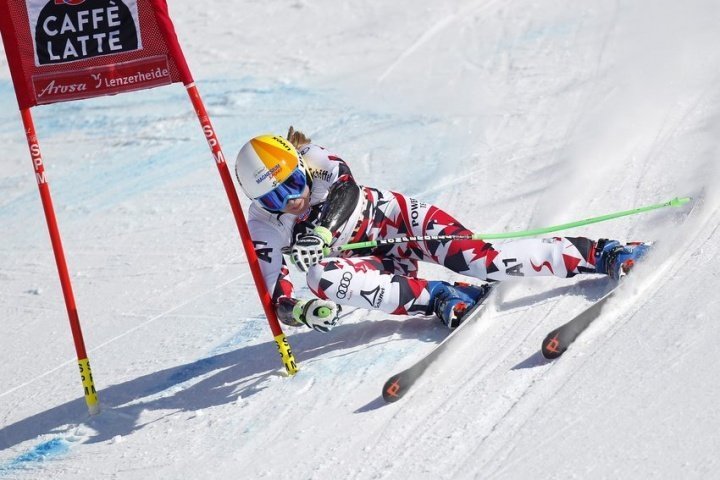На трассе швейцарского курорта было ясно и безветренно, температура чуть ниже нуля. Снег - плотный и цепкий, идеальные условия для супергиганта.