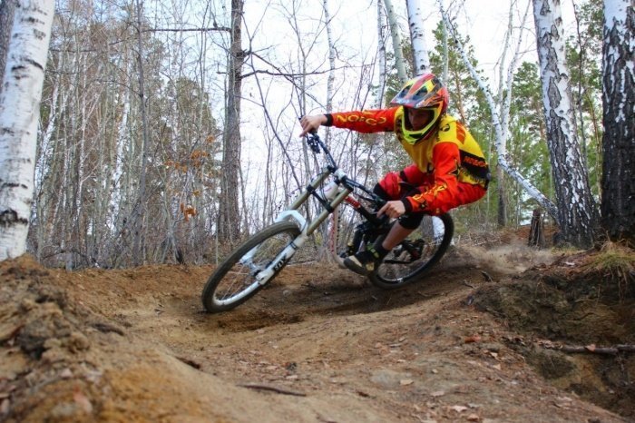 У себя на горе приходится тренировать трассу отрезками, так как подъёмник работает только на сборах и соревнованиях. Каждый спуск нужно максимум выжимать из себя и байка. Трассу спортсмен постоянно усложняет, чтобы уровень рос и ребятам было интересно приезжать в гости, на сборы и на гонки.