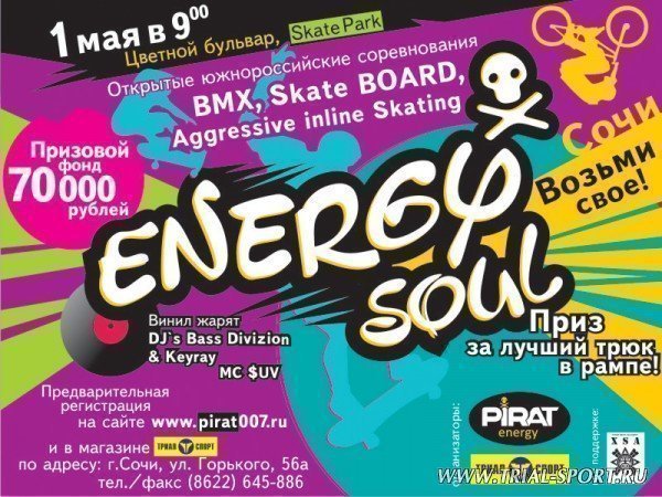 Впервые в Сочи! Чемпионат Юга России по экстремальным видам спорта ЭНЕРГИЯ ПИРАТА – ЭНЕРГИЯ ДУШИ. Новый совместный...