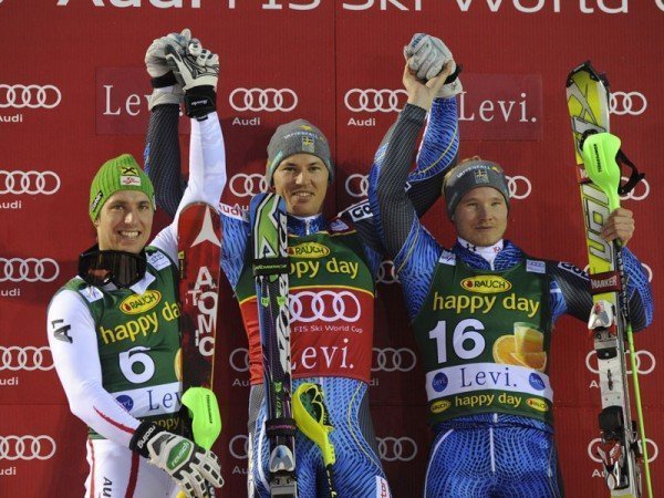Спортсмен команды NORDICA RACING TEAM, шведский слаломный специалист Andre Myhrer выигрывает первый слалом сезона в Леви...
