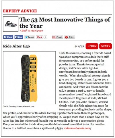 Доска Ride Snowboards попала в список лучших инноваций года, составленный изданием Men's Journal! И вот почему.