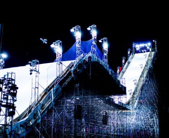 Фестиваль Air and Style был самым ярким и масштабным событием из тех, что когда-либо проходили в Южной Калифорнии. Высота трамплина составляла почти 50 м - просто колоссально! Вдоль трамплина располагались сцены и палатки с едой и напитками, то есть публика была заведена до предела.
