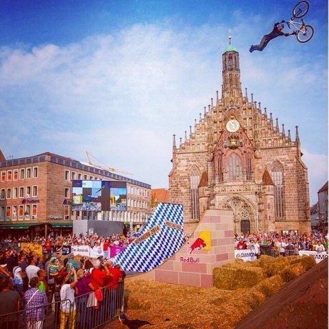 На самом деле Red Bull District Ride - масштабный этап серии фрирайд соревнований - собрал в центре Нюрнберга 55000 зрителей. Собравшиеся знали, что пришли не зря.