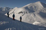 Так или иначе, нам удалось обойти многие бэккантри-маршруты в районе Гудаури – и понять, что здесь действительно стоит много ходить, и тогда можно найти замечательные, разнообразные рельефы. Потрясающие горы вокруг, напоминающие Аляску, конечно далеко не все доступны пешком, но в отдельные точки можно попасть с помощью вертолета – хели-ски в Гудаури есть, с канадскими и грузинским гидами, швейцарскими пилотами. И при благоприятной снежной обстановке вариантов для катания здесь масса, с любым уровнем сложности, от классических легких полей до десятков суровых кулуаров и стен со скальными рельефами.